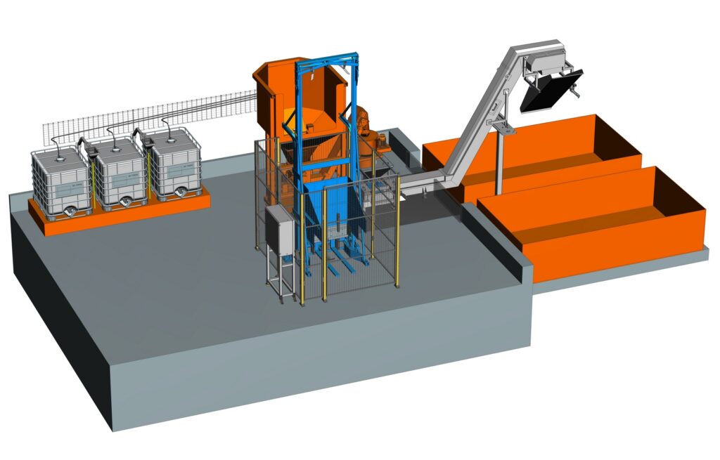 Linka slouží pro separaci oleje a kovových třísek z obrábění. Vozíky s odpadovým materiálem zařízení automaticky vyklopí a dojde k separaci řezné emulze a drcení třísek. Třísky jsou automaticky tříděny podle čarového kódu do kontejnerů a řezný olej je podle typu čerpán do jednoho ze tří IBC kontejnerů s hlídáním hladiny.
