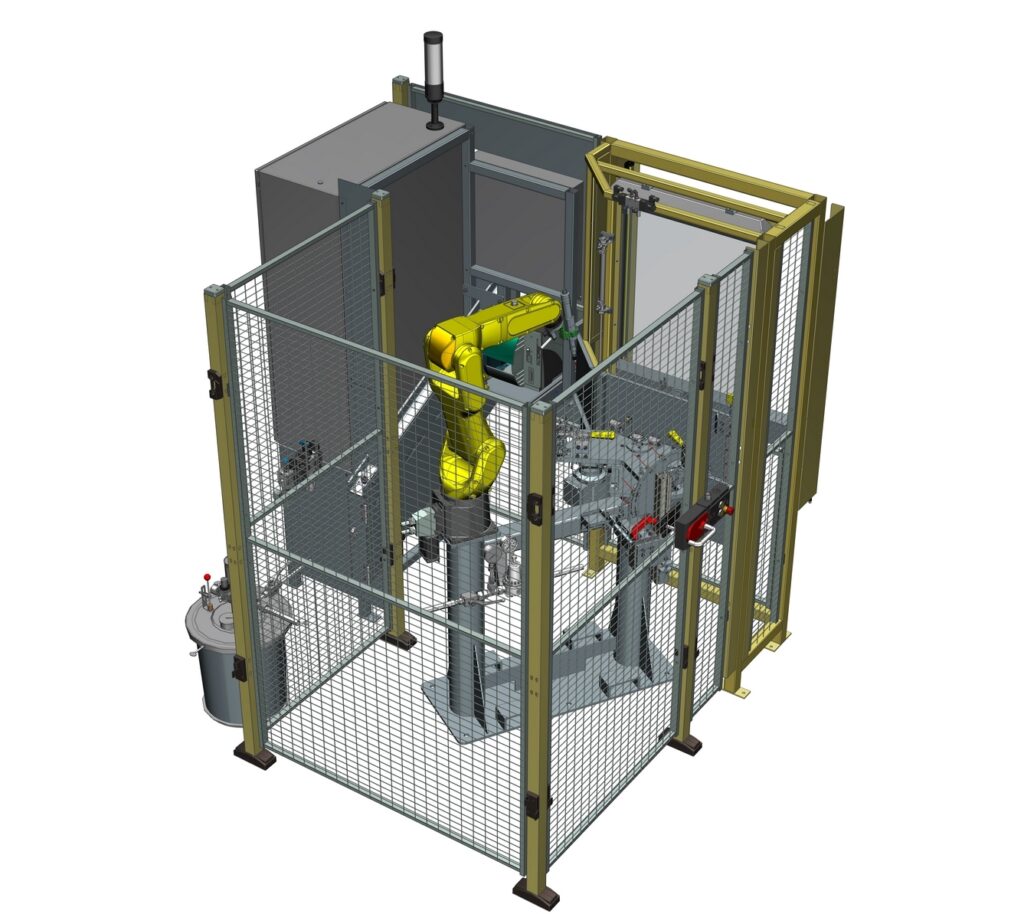 Zařízení je vybaveno kamerou s počítačovým viděním, které najde plnící otvor převodovky. Plnící hlavy, umístěné na tříosém portálu, najedou nad otvor převodovky.