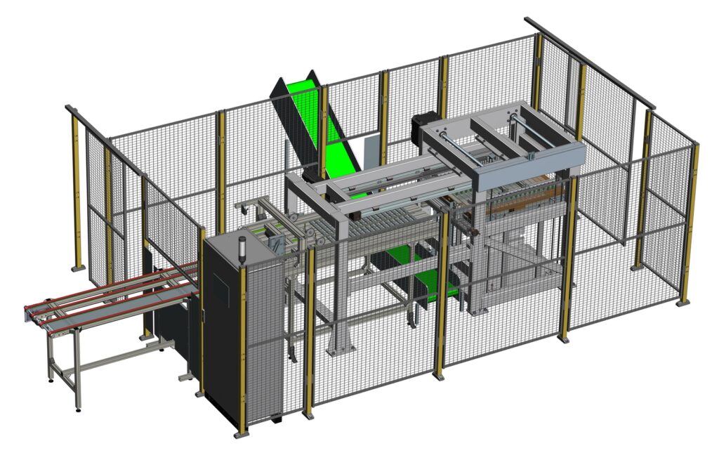 Linka slouží k balení desítek různých typů malých kovových dílů. Díly jsou z kontejneru nasypány do vstupního vibračního zásobníku, pomocí soustavy dopravníků a navažovacího zařízení linka rozdělí díly do KLT, nebo papírových krabic. Výstupní balení je označeno štítkem s přesným počtem dílů. Balení jsou průběžně paletizovány robotem Fanuc, který je vybaven univerzálním uchopovačem, aby mohl paletovat buď papírové krabice, nebo KLT bez obsluhy operátorem. Linka nahrazuje manuální práci 9 pracovníků.