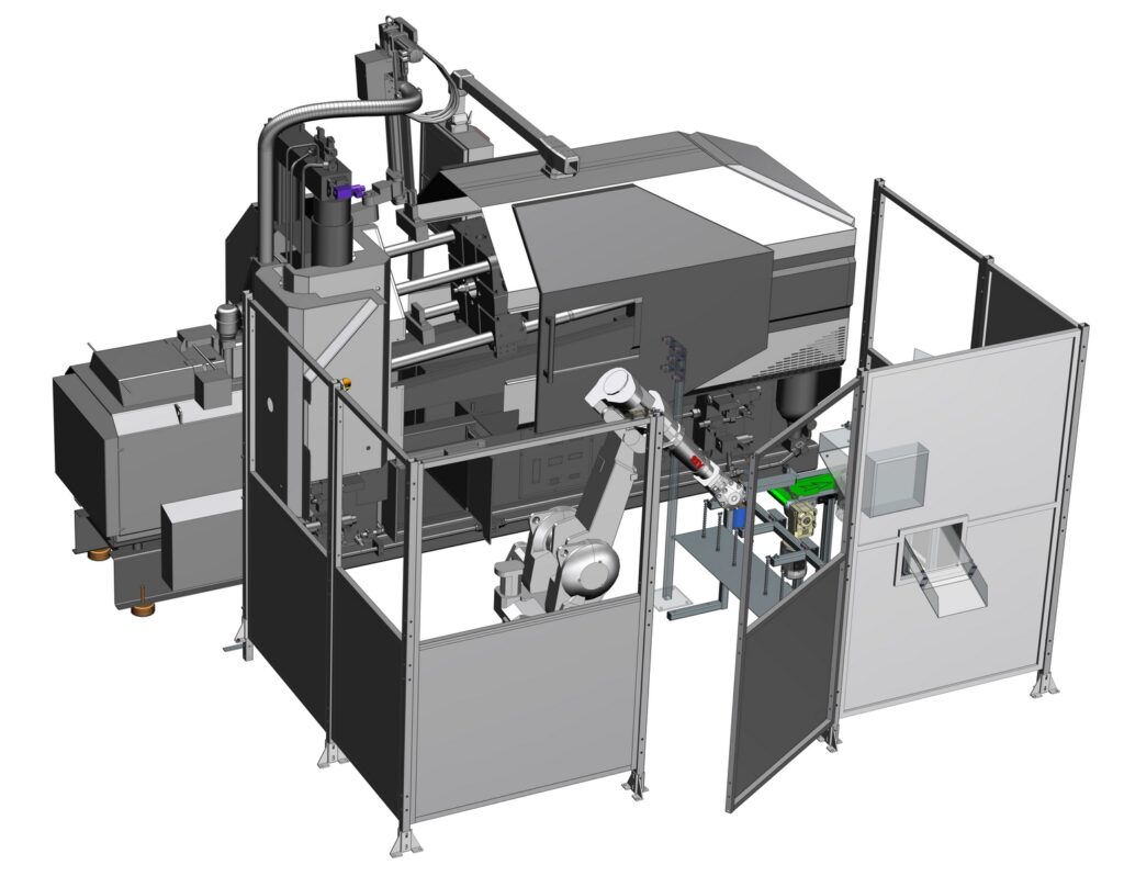 Celek se vstřikolisem a JUS pro montáž výrobku